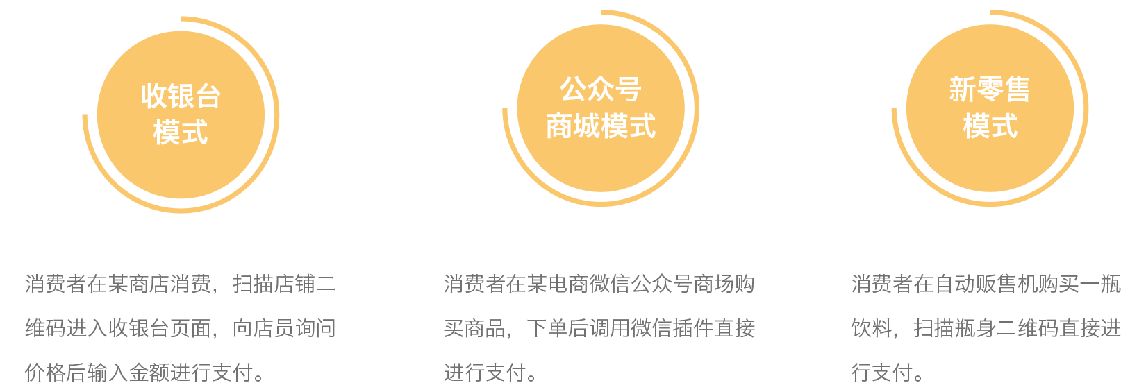需要合作商户在微信进行入驻,支持收银台模式、微信公众号、固定二维码支付。
