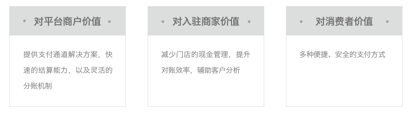 整合企业线上线下终端支付能力、提供高效的、多样化支付,实现企业的零售数据精细化管理、会员精准营销。